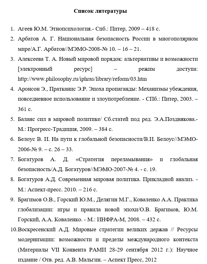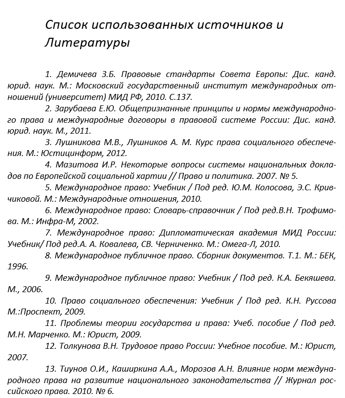 Пример готового списка литературы для диплома