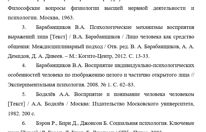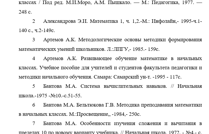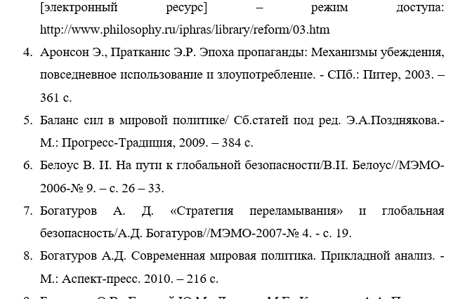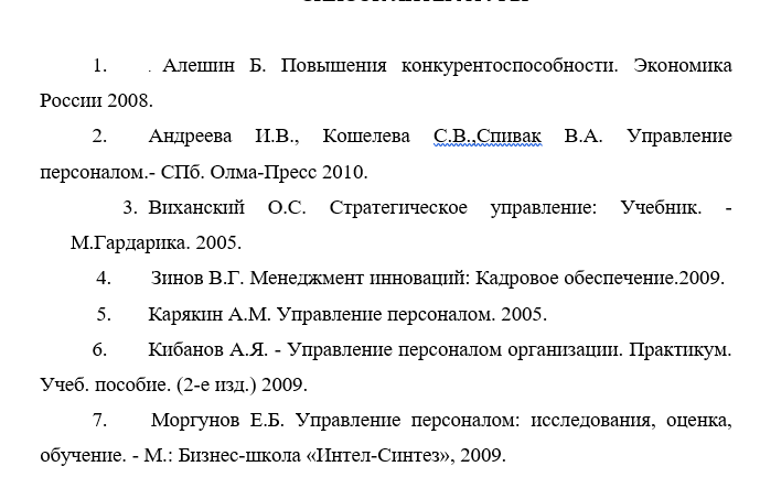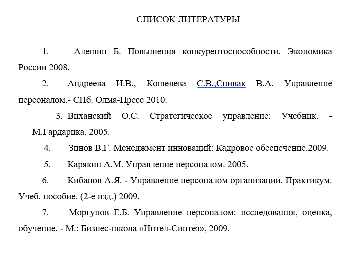 Примеры, образцы списка литературы ВКР