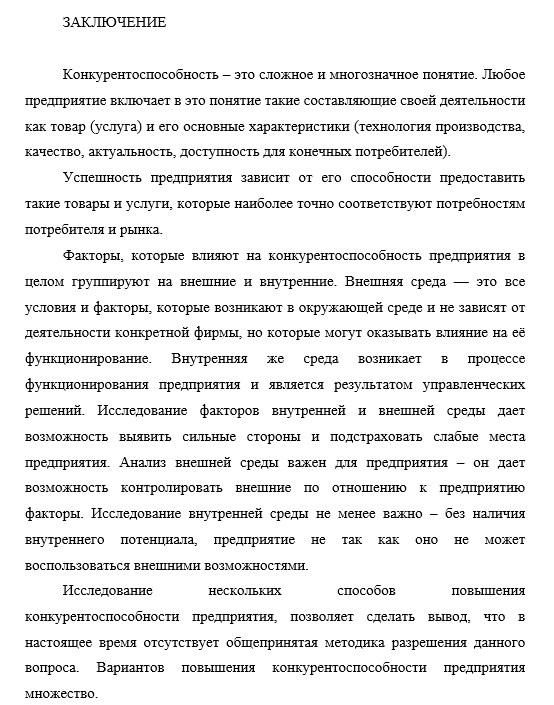 Также представим третий образец заключения: