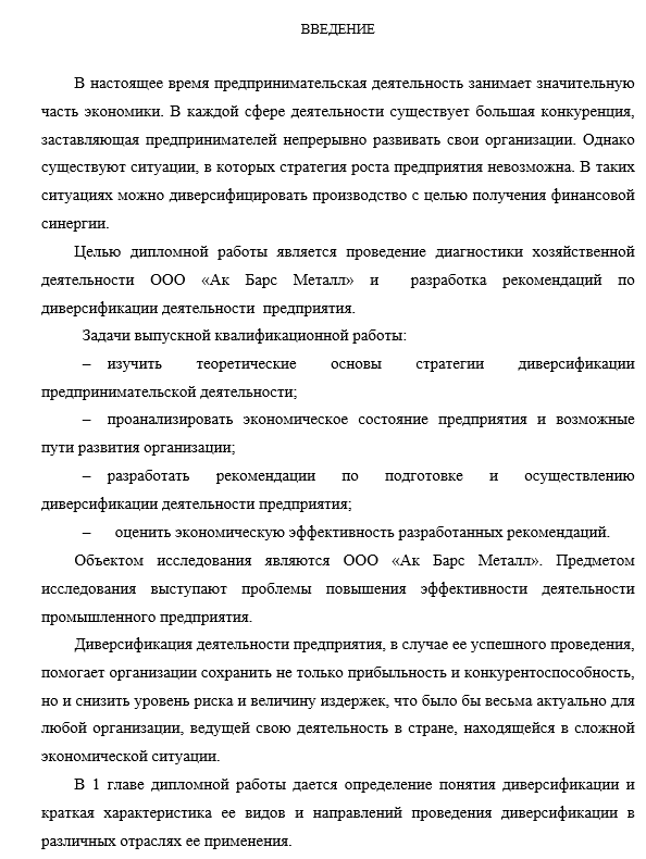 Образец введения в дипломе
