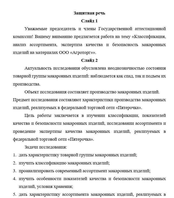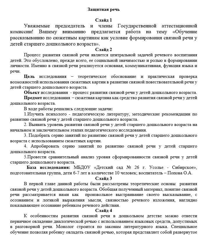 Образец защитной речи